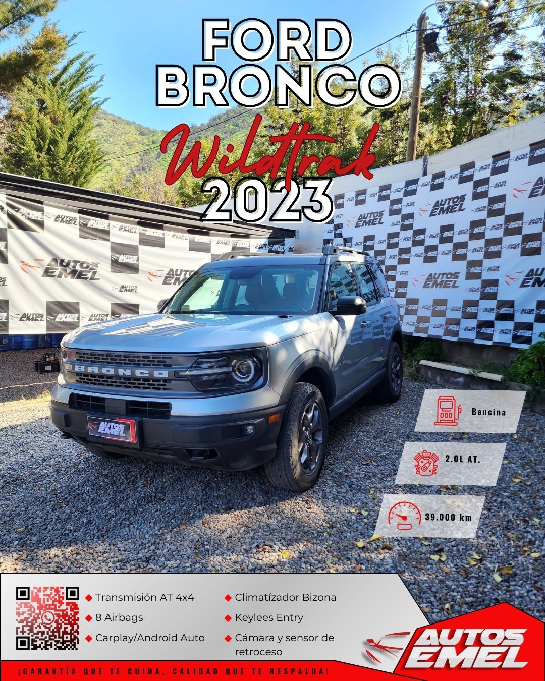 Ford Bronco Wildtrak • 2.0L Bencina Automático • 2023 • 39.000 KM • Documentación en regla • Mantenciones en concesionario • $25.990.000.-